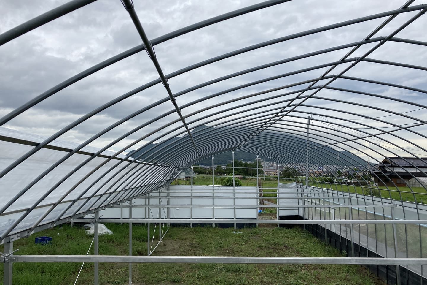 ハウスづくりでは、中古のハウスを解体し、その廃材を再利用して一からハウスを作っています。しかし、廃材は古くなっていたり、傷んでいるものもあるので加工したり、新しい材料を使わないといけない事も多々あります。それでも、廃材を再利用することは環境に優しい取り組みへと繋がっています。パイプを作る過程で二酸化炭素が排出されます。一本でも多くの廃材を再利用することは、環境問題でもある二酸化炭素の削減に繋がります。